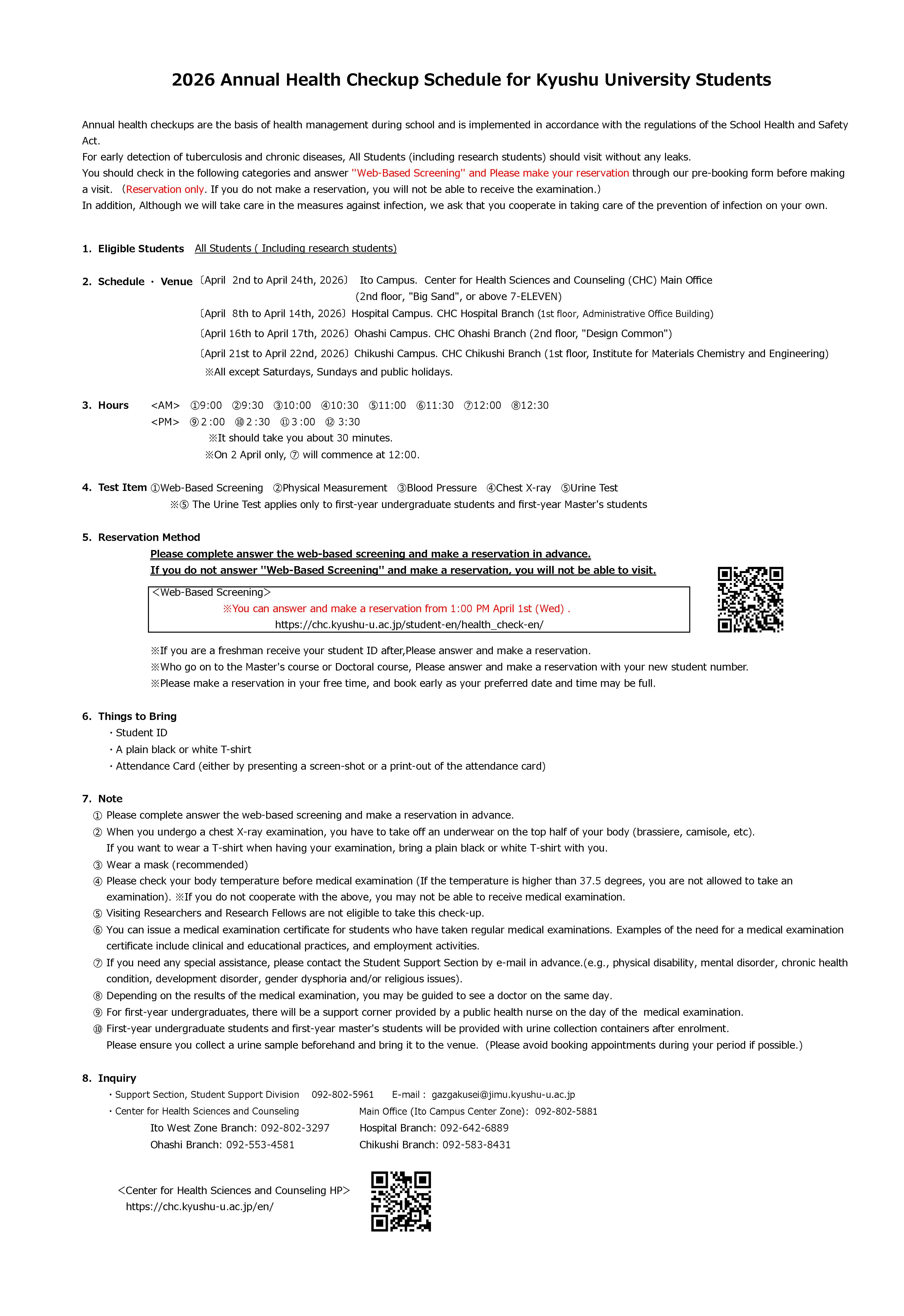 【To All Students】Notice of the 2026 Annual Student Health Checkup