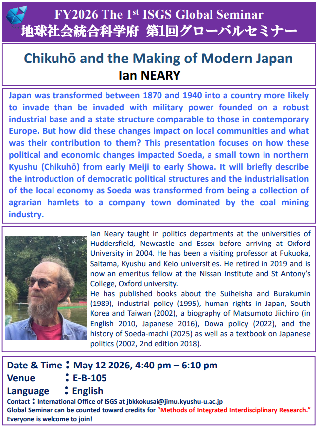 The 1th Global Seminar【May 12, 2026】Topics to be discussed: Chikuhō and the Making of Modern Japan