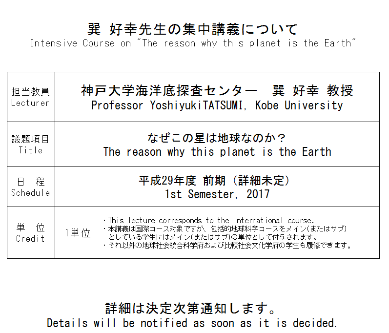 Intensive Course on "The reason why this planet is the Earth"
