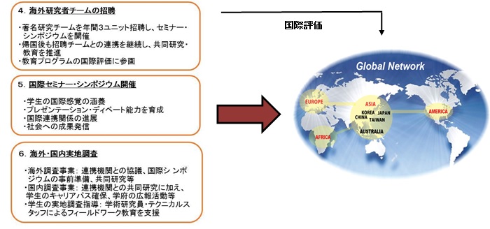 (海外研究者チームの招聘、国際セミナー・シンポジウム開催、海外・国内実地調査)