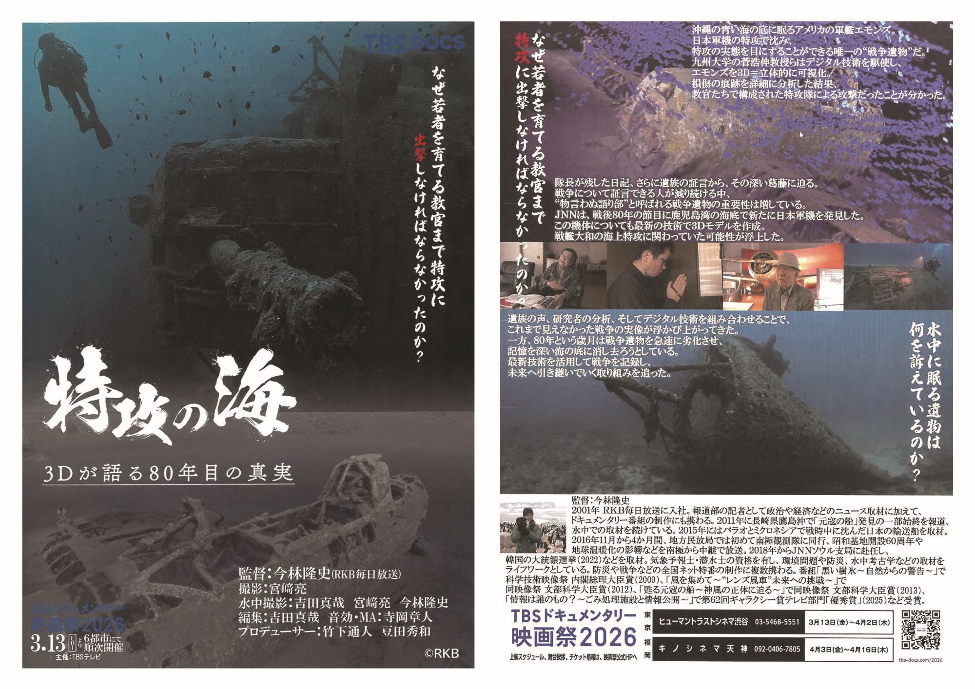 RKB毎日放送の今林ディレクターのご尽力で、映画「特攻の海~3Dが語る80年目の真実~」が以下のスケジュールで上映されることとなりました。菅教授が、潜水調査などの研究面で監修・出演しております。